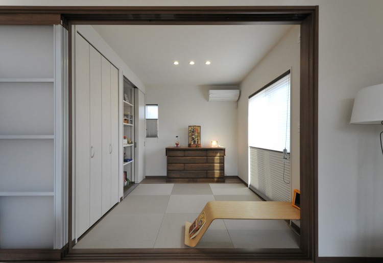 - 1階リビングには和室も隣接。大きなタンスも置ける板間つき。