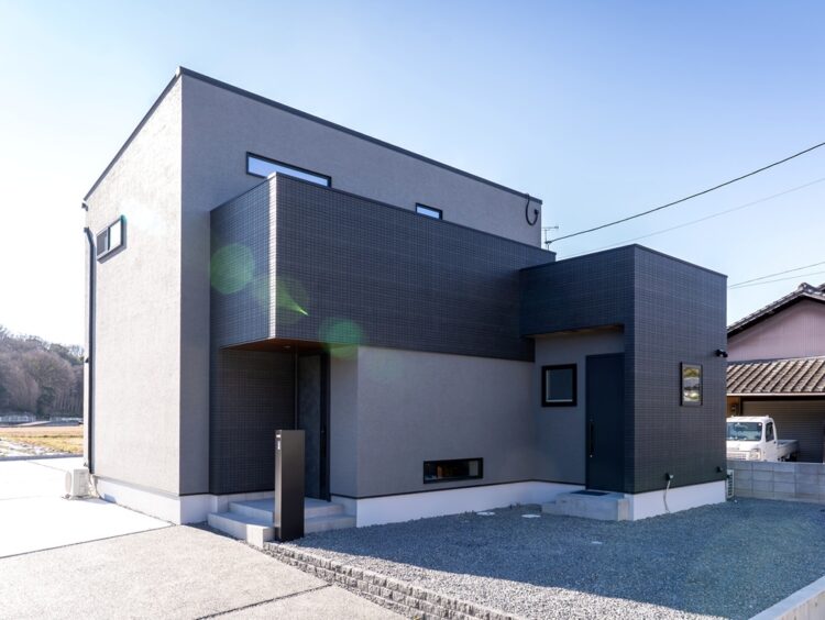 重厚感のあるブラックモダンの家。玄関とキッチンを繋ぐ空間と動線が家事をサポート。