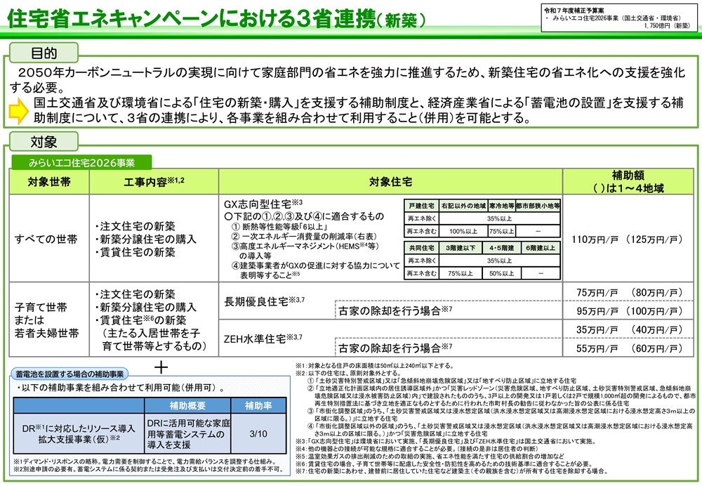 みらいエコ住宅2026事業(補助金)のお知らせ